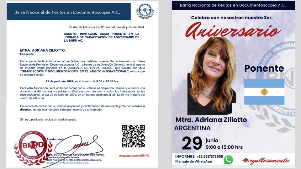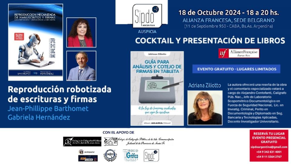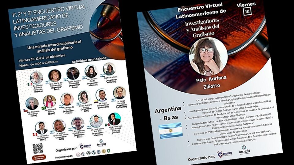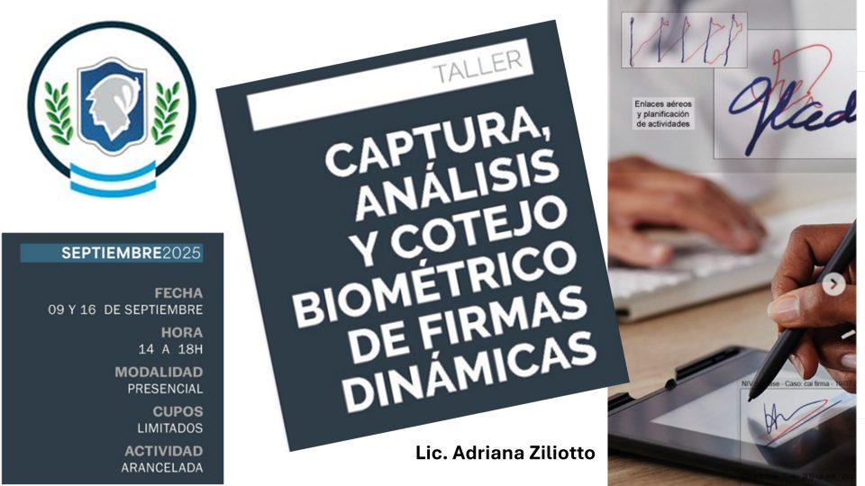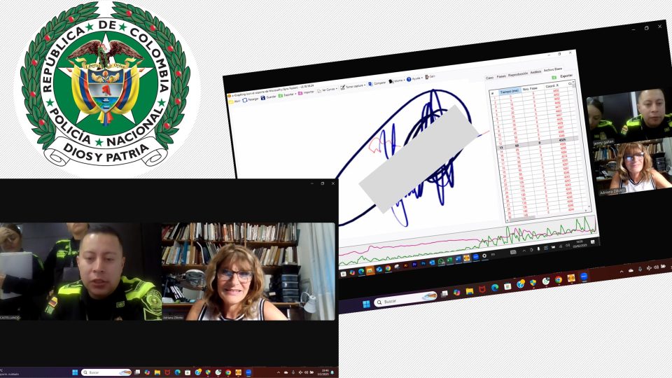 Inicio Grafopatología dinámica en la Escala de Temblor EsencialLa Escala de Tolosa-Faher-Maria utilizada por la Neurología, tiene- entre otros objetivos- medir el temblor de acción a través de […] Pantalla negra para descubrir automatismosVer para creer o… ¿no ver para creer? En la era de la biometría dinámica, las capturas de firmas y […] Alzheimer y adulteraciones en enlaces aéreos y periféricosLa utilización de los softs de captura informática y análisis biométrico de escritura permiten a calígrafos y grafólogos adentrarse en […] ¿Nombre o firma? Las apariencias engañan... pero solo las aparienciasEste caso muestra cómo una misma forma gráfica puede activar dos circuitos cerebrales distintos. La firma es imprescindible cuando se […] FacebookYouTube