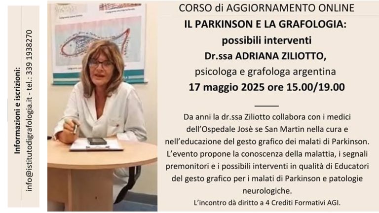 17 de mayo, 2025, desde Italia: «El Parkinson y la Grafología, posibles intervenciones»