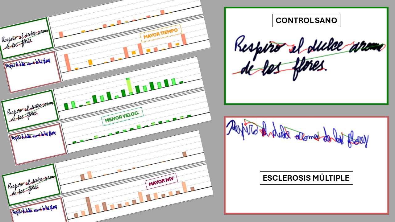 Un estudio sobre “la cinemática de los movimientos de la escritura como expresión de alteraciones cognitivas y sensoriomotoras en personas con esclerosis múltiple” (Bisio et al., 2017) no solo encontró marcadores gráficos típicos de la enfermedad sino una correlación significativamente alta con respecto a la evaluación clínica. La investigación sobre grafopatología, además del interés médico, es de suma importancia para los peritos calígrafos, expertos en escritura encargados de la difícil tarea de reconocer las diferencias entre las alteraciones genuinamente provocadas por una enfermedad y las producidas intencionalmente con eventual interés fraudulento.