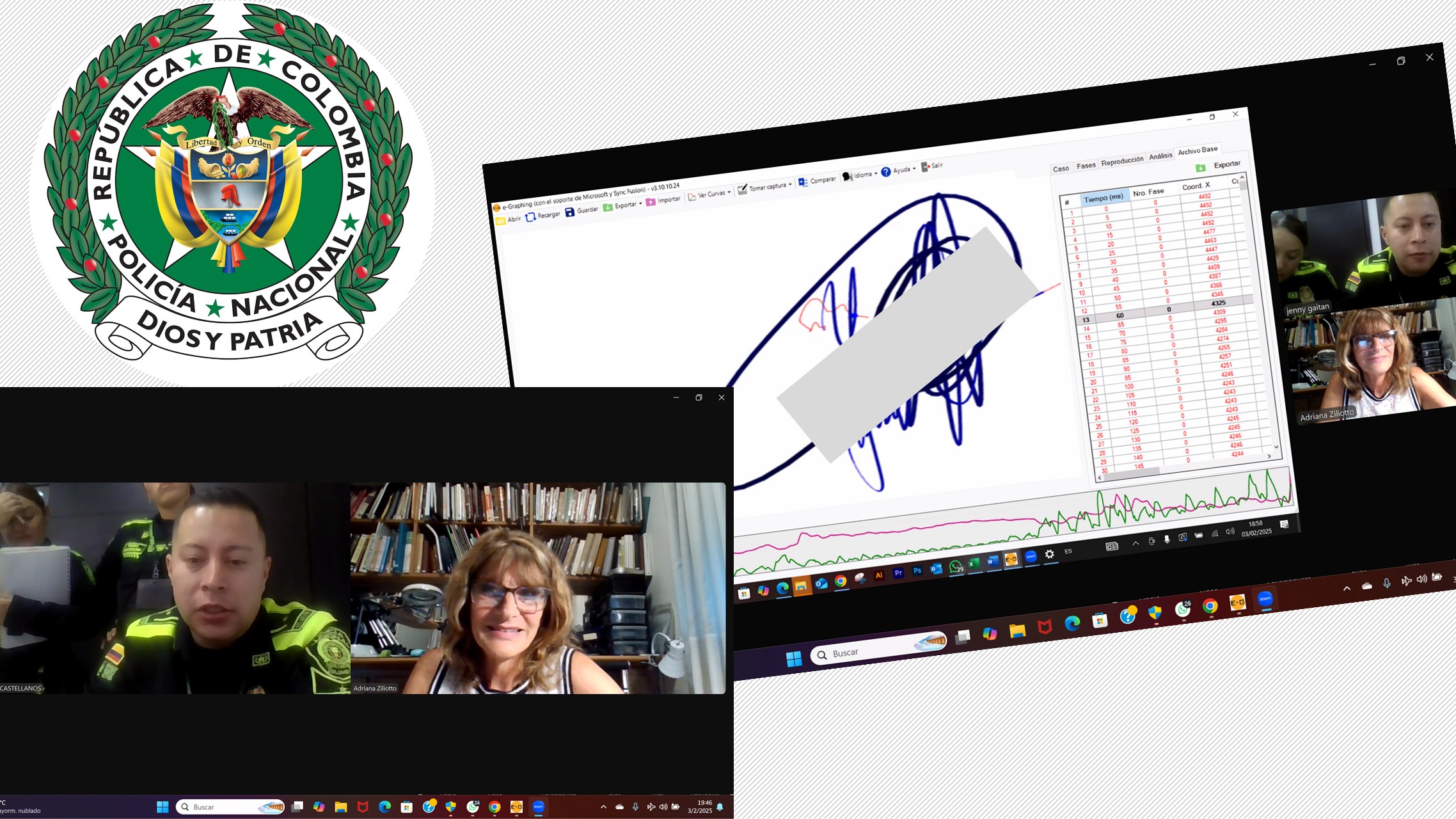 La División “Técnica Profesional en Documentología” de la “Escuela de Investigación Criminal” de la Policía Nacional de Colombia lleva a delante un proyecto titulado «Firmas Tecnológicas de Autenticación como herramienta para la confrontación de gestos gráficos». A raíz de este trabajo, el martes 4 de febrero mantuvimos un encuentro vía zoom con el personal de la Fuerza que está involucrado en el mismo para dialogar sobre las funciones de E-GRAPHING-PLUS y ampliar la posibilidad de sus aplicaciones en la importante tarea.